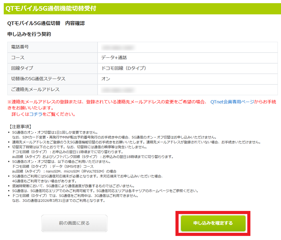 QTnet会員専用ページから5G通信の切替をお申込みください。